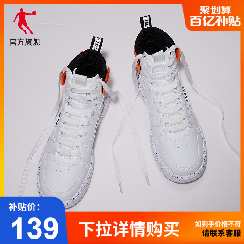 乔丹板鞋秋季新品高帮滑板鞋学生百搭小白鞋运动休闲防水男鞋